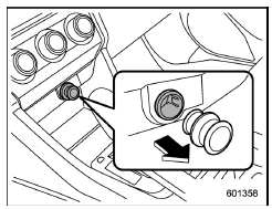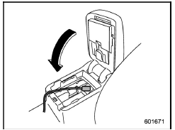 When the lid of the center console is closed, an opening remains between the center console and the lid to allow the power outlet in the center console to be used. Pass the cord of the electrical appliance through this opening.