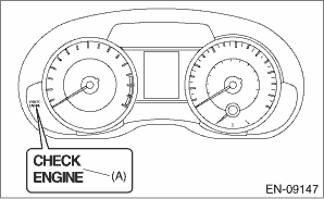 1. When the ignition switch is turned to ON (engine OFF), the malfunction indicator light (A) in the combination meter illuminates.