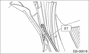 (1) Using ST, loosen the body side bolts of the upper hinge - front door and the lower hinge - front door.