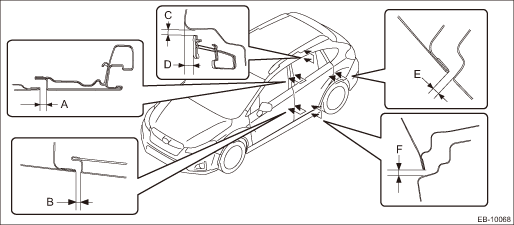 F | Panel assembly - rear door to Side sill | 6.0±1.5 mm (0.24±0.06 in) |