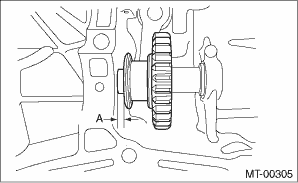 2. Select the appropriate adjusting washer from the table below, and adjust until the clearance between the reverse idler gear and transmission case wall is within specification.