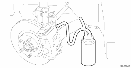 While bleeding air, keep the reservoir tank filled with brake fluid to prevent entry of air.