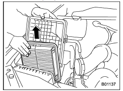 When replacing the air cleaner element, use a genuine SUBARU air cleaner element. If it is not used, there is the possibility of causing a negative effect to the engine.