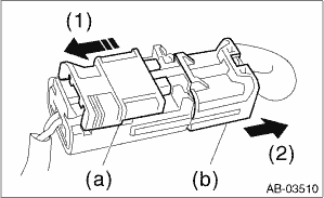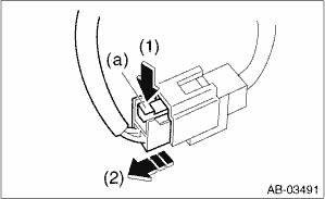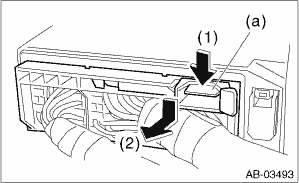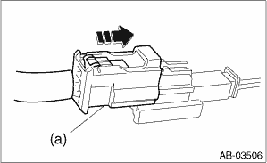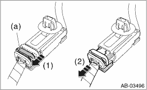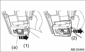 (2) While holding the slide lock (a), pull the connector (b) in the direction of arrow.