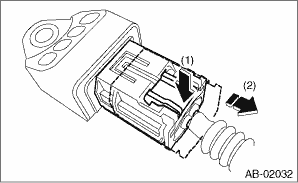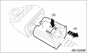 (4) Holding outer part, pull it in the direction of arrow to disconnect the connector.