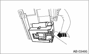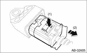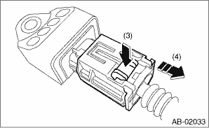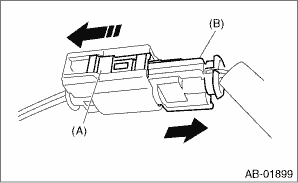 (2) While holding the slide lock (A), pull the connector (B) in the direction of arrow.