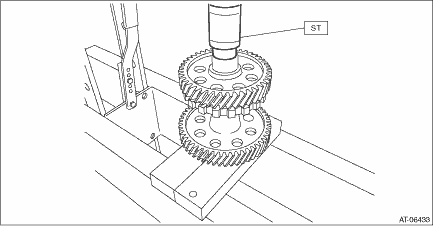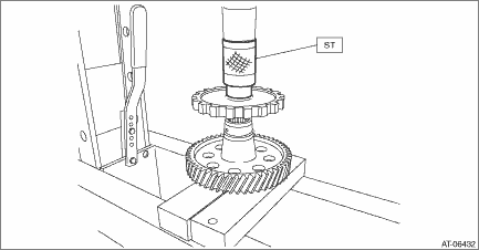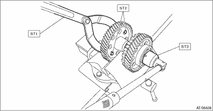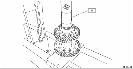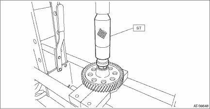 5. Using the ST, counter the rotation of the reduction drive gear assembly, and install the lock nut.
