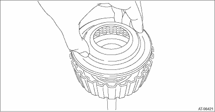 Apply CVTF to the lip section of transfer clutch piston seal.