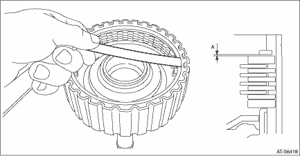 (3) When the clearance “A” exceeds the limit for use in step (2), replace the pressure plate installed on the lower side of the transfer clutch plate set, and check the clearance “A” again.