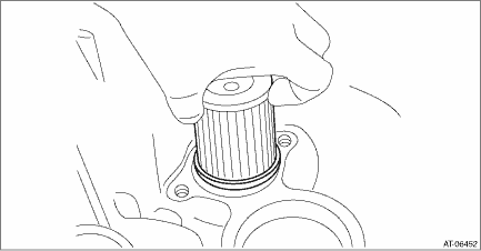 1. Face the O-ring side of the CVTF filter to the transmission case side, and install the CVTF filter.