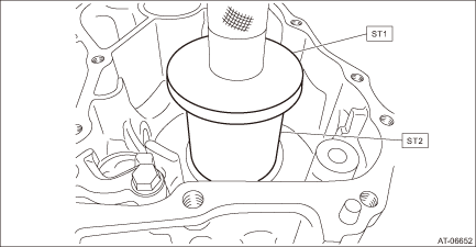 4. Using ST1 and ST2, install the ball bearing on the reduction driven gear side.