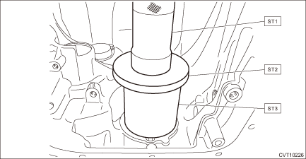 7. Using ST1, ST2 and ST3, install the ball bearing on the secondary pulley side.