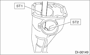 (1) Install the rear bearing race into the differential carrier using ST1 and ST2.