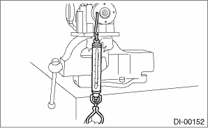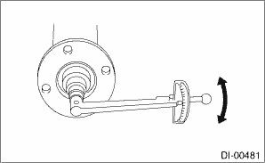 (7) Turn the ST by hand to slowly seat the bearing, and tighten the self-locking nut while measuring the initial load or initial torque with a spring scale or torque wrench. Select the preload adjusting washer and spacer so that the specified preload is obtained when nut is tightened to the specified torque.