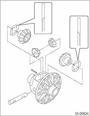 (3) Adjust the side gear backlash by selecting side gear thrust washer.