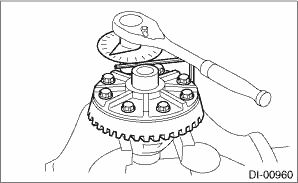(2) While checking the tightening angle with the angle gauge, further tighten the hypoid driven gear mounting bolts.