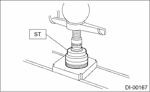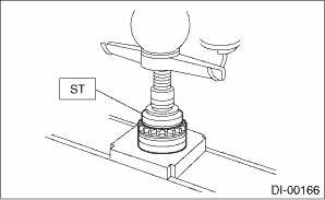 13. Using the ST, press-fit the side bearing to the differential case.