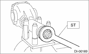 (1) Tighten the hypoid driven gear mounting bolts to the specified torque using the ST.