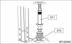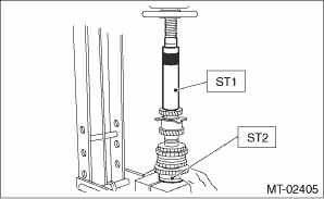 6. Install the set of double taper roller bearing using ST1, ST2 and a press.