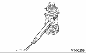 9. Using a spring scale, check that starting torque of the double taper roller bearing is 0.1 to 1.5 N (0.01 to 0.15 kgf, 0.02 to 0.34 lbf).