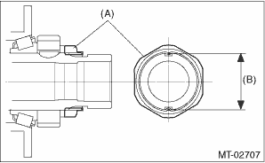 10. Crimp the lock nut at two locations so that the dimension (B) becomes 41.1 mm (1.62 in) or less.