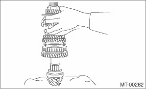 • Make sure that there is no large clearance at both sides of the 1st-2nd shifting insert after assembly.