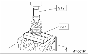 3. Install the 4th needle bearing race using ST1, ST2 and a press.
