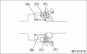 • Install the snap ring side of the double ball bearing facing the 5th drive gear side.
