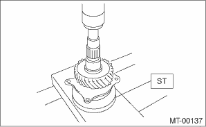 1. Set the ST against the inner race of the ball bearing, and install the transfer drive gear.