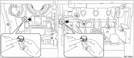 1. Apply liquid gasket to the threaded portion of the main gallery plug, and install the main gallery plug to the cylinder block LH.