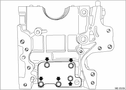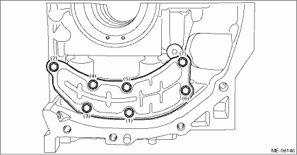 (2) Install the oil separator cover to the cylinder block RH, and tighten the oil separator cover bolts in numerical order as shown in the figure.