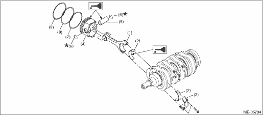 (1) | Connecting rod | (4) | Piston | (7) | Oil ring |