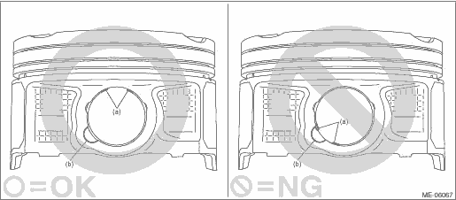 • After installing the circlip, rotate the circlip so that its end part (a) and the cutout portion of circlip groove (b) do not match.