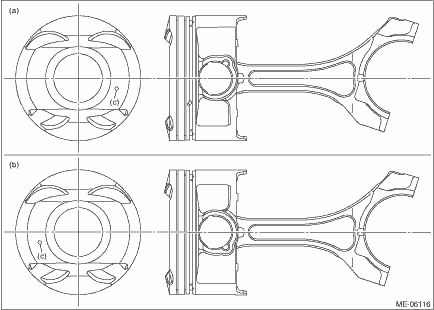 Align the front mark of piston and the connecting rod direction correctly as shown in the figure.