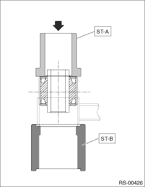 2. Using the ST-A and ST-B, press-fit the bushing.