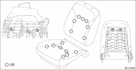 • Install the hog rings to the specified points securely and make sure that there is no wrinkle or twisting on the cover COMPL - front backrest.