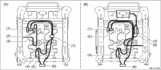 (2) | Side airbag connector | (5) | Backrest heater harness | (8) | Occupant detection control module |