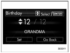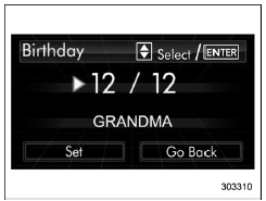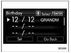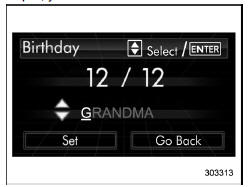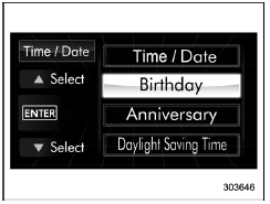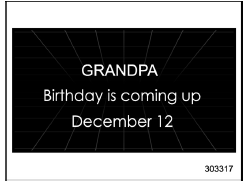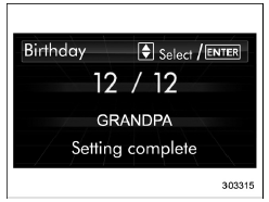If a birthday is approaching, the following screen will be displayed accompanied by a beep when the ignition switch has been turned to the "ON" position. This function can be set to on or off. For details, refer to "Bypass screen setting"