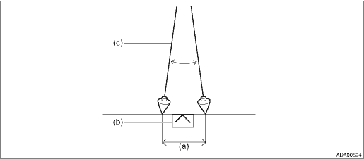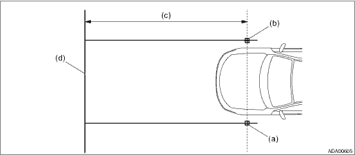 (a) | Vehicle body center line (C-D line) | (b) | Wall | (c) | Setting reference (vertical line) |