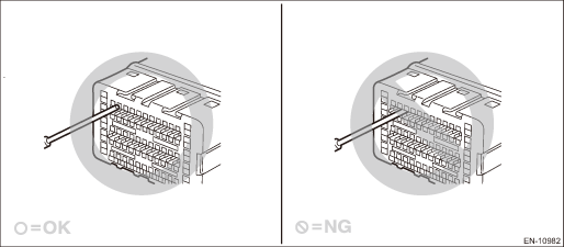5. When measuring the voltage or resistance of individual sensor or all electrical control modules, use a tapered pin with a diameter of 0.6 mm (0.024 in) or less and touch it to the tip of terminal.