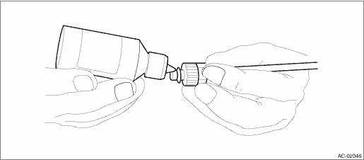 • HFC-134a compressor oil is very hygroscopic. When replacing or installing/removing A/C parts, immediately isolate the oil from atmosphere using a plug or tape. In order to avoid moisture, store the oil in a container with its cap tightly closed.