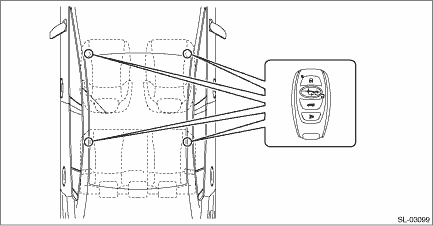 (1) With the rear gate locked, the all doors unlocks and the rear gate opens simultaneously and the answer-back function operates (hazard light blinks twice, external buzzer sounds twice) when you press the rear gate opener button while carrying the access key.