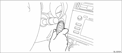 When keyless access is cancelled, door lock and unlock can be operated by access key button operation and the starter system can be operated by passing the access key over the push button ignition switch with the access key button toward you.