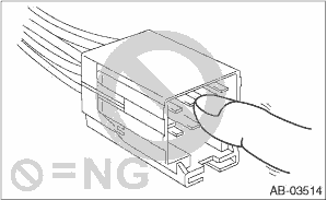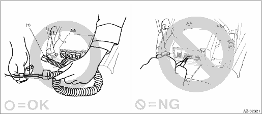 • When checking, use a test harness (1). Damage to connector terminal causes malfunction. Do not directly put the tester probe on airbag connector terminal.