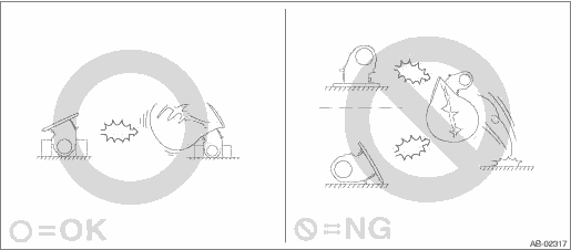 • Observe the following; the airbag system component or the internal parts of seat belt pretensioner may be damaged or the reliability may be greatly lowered.