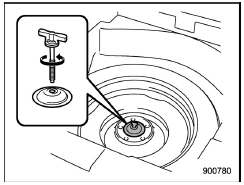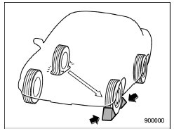 2. Apply the parking brake securely and shift the shift lever in reverse (MT models) or the select lever to the "P" (Park) position (CVT models).