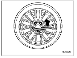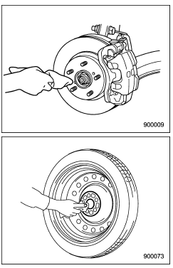 For the wheel nut tightening torque, refer to "Tires" F12-8. Never use your foot on the wheel nut wrench or a pipe extension on the wrench because you may exceed the specified torque. Have the wheel nut torque checked at the nearest automotive service facility.