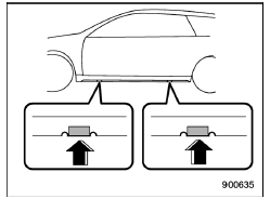 9. Place the jack under the side sill at the front or rear jack-up point closest to the flat tire.