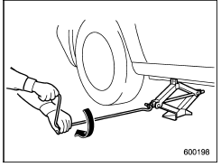 8. Loosen the wheel nuts using the wheel nut wrench but do not remove the nuts.