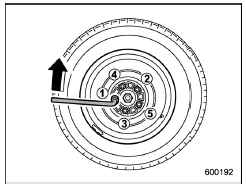 15. Use the wheel nut wrench to securely tighten the wheel nuts to the specified torque, following the tightening order in the illustration.